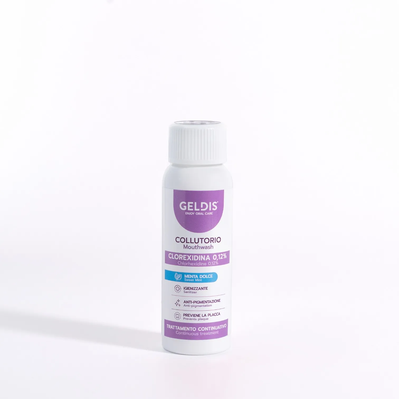 Apa de gura Geldis 0,12% clorhexidina previne formarea si acumularea placii bacteriene si sustine sanatatea gingiilor. Este potrivita chiar si pentru cazurile de gingii sensibile, aparate ortodontice fixe, proteze dentare sau implanturi, oferind o igiena orala optima.