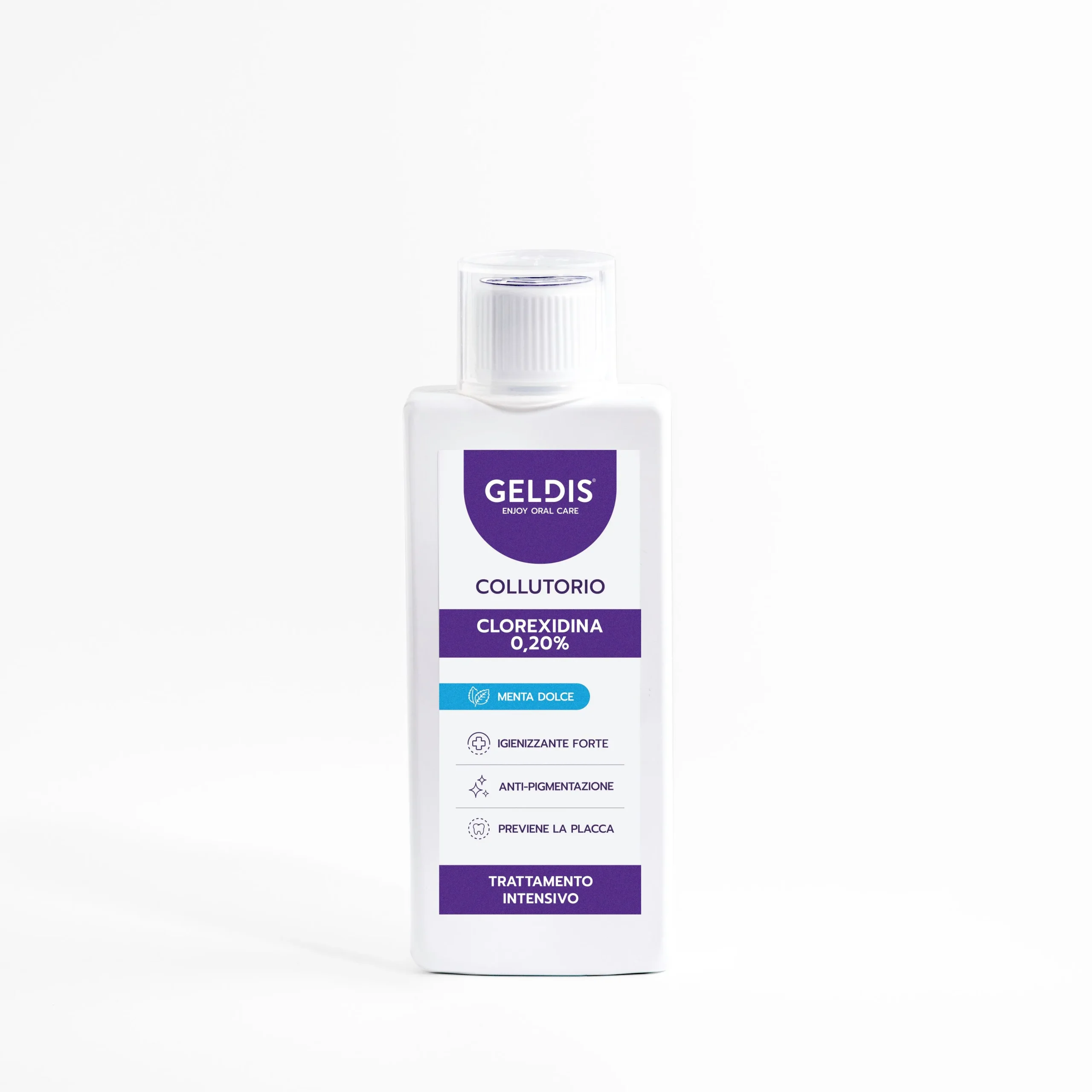 Apa de gura Geldis 0,20% clorhexidina previne formarea si acumularea placii bacteriene si sustine sanatatea gingiilor. Este potrivita chiar si pentru cazurile de gingii sensibile, aparate ortodontice fixe, proteze dentare sau implanturi, oferind o igiena orala optima.