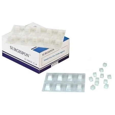 SURGISPON este un burete steril din gelatina, cu structura microporoasa, conceput pentru a asigura o hemostaza eficienta si pentru a minimiza pierderile de sange dupa interventii chirurgicale dentare sau maxilo-faciale.